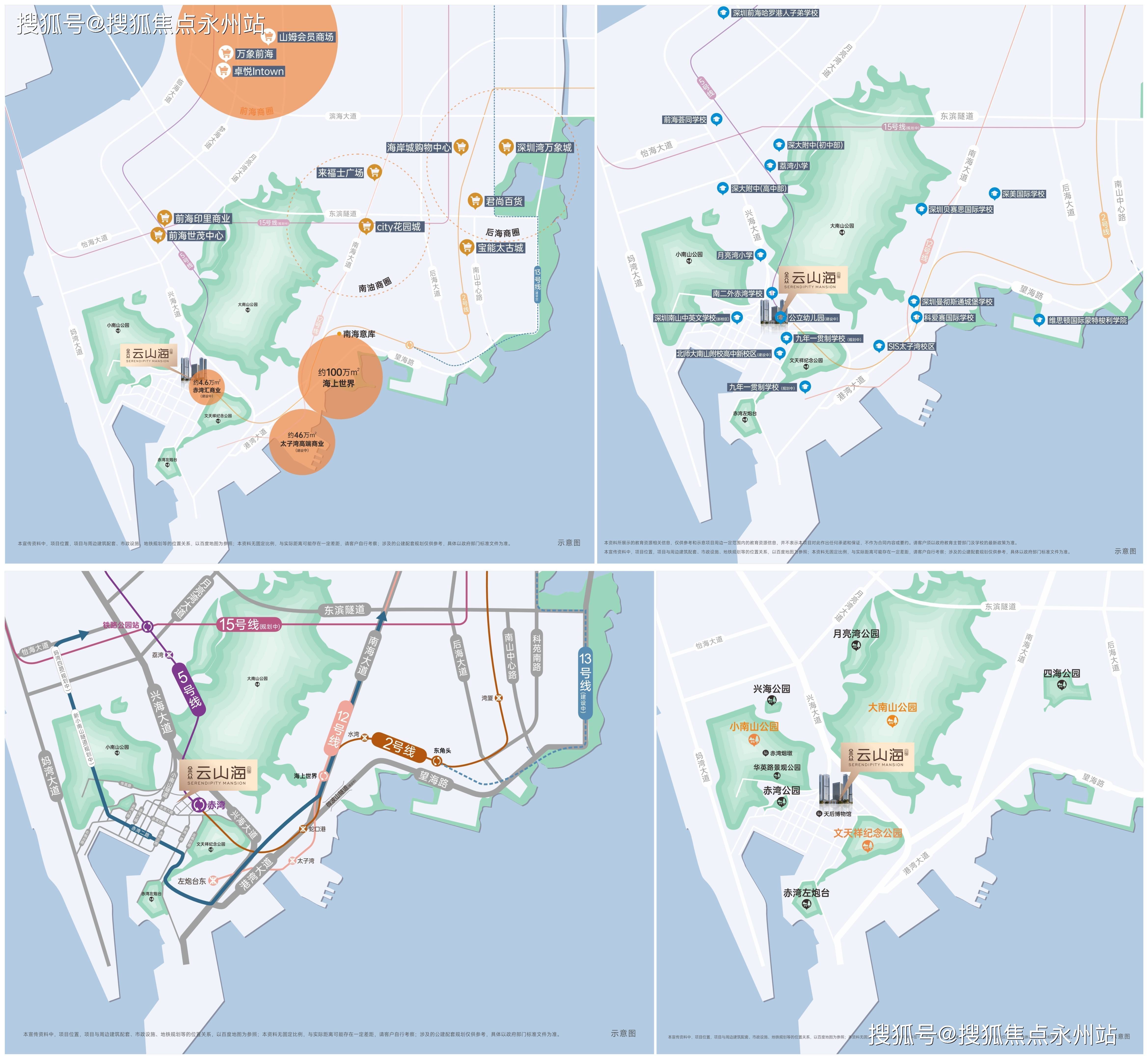交通配套:项目紧邻地铁2号线号线的赤湾站交通十分便捷。周边还有多条公交线路和道路网络方便居民出行。此外项目还可通过小南山隧道或港航路连接兴海大道等主干道进一步拓宽出行选择。